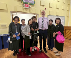 「アメリカンツアーに参加して」20年前、教職員組合レク主催で「新島襄の足跡辿るボストン・アーモストの旅」を企画し、31名の教職員、家族が参加した。今回の特徴は中高生各4名のアーモスト大学とグレイス教会でのスピーチで、流暢な英語で「私の夢、志し」を発表した。本井先生の説明で訪問地での新島先生との関係をより深く理解できた。Tawa教授に私の本「新島襄の足跡 海外国内15コース」を手渡し、同大から2年間派遣される阿部壱慶君と交流したいと名刺を渡した。