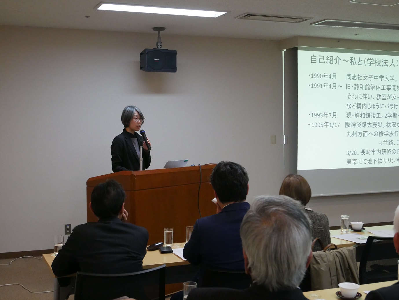 講演会の最後には同志社校友会神奈川県支部を代表して平川功支部長から両先生に対して「楽しく同志社と京都を知ることが出来ありがとうございました。1年半前から学校法人とともに準備してきた甲斐がありました」との挨拶がありました。