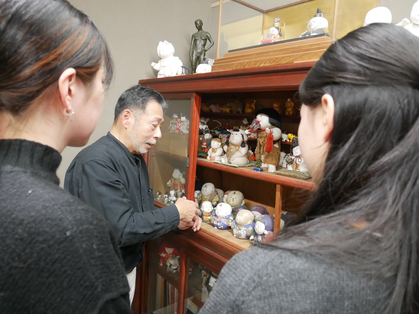 インタビューを通じて、御所人形に込められた島田さんの思いだけではなく、人生においてのアドバイスをいただいたように思います。艶やかな白い肌、愛らしい丸みを帯びたフォルム、御所人形を形成する全ての要素に島田さんが表現する「子どもの究極の可愛さ」を感じられ、私自身がこの人形にどんな思いを託したいかと考えるようになりました。この先も美術作品に向き合う際、既存の情報だけではなく、まずは作品に対して自分が何を感じたのか、どのような部分に惹かれたのかという、自身の感覚に誠実でありたいと思います。自分自身の内側から生まれる反応を受け止める、その積み重ねによって作品との豊かな対話を育んでいきたいです。