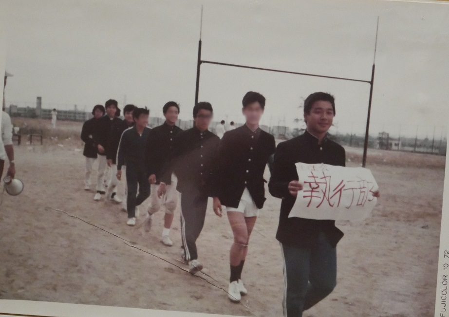 (同志社香里高校時代、ラグビー部(左) 同志社香里中学3年、生徒会長(右))